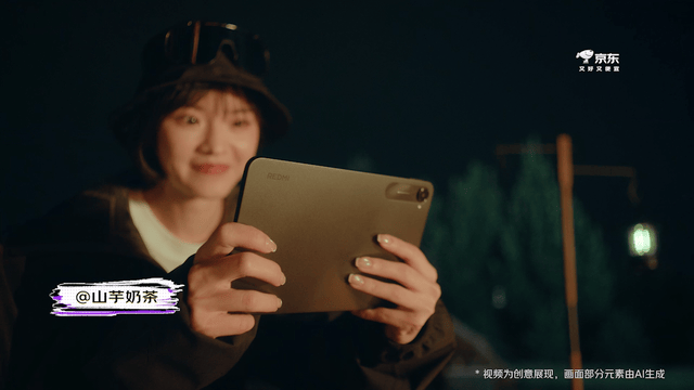 这是京东3C数码最近给超级趋势品类小平板做的AIGC广告,迅速吸引了游戏党的目光,原来用小平板玩游戏也可以这么爽!