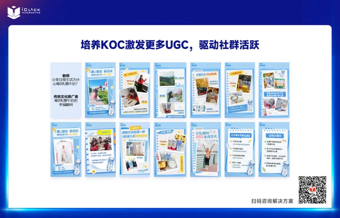 0乳糖牛奶的消费者对“乳糖不耐”的标签具备天然的身份认同感,也是产品自带的话题优势。爱点击据此策划了围绕“身份认同感”激发情感共鸣的内容传播活动,促使用户自发分享社群活动,为品牌KOC的养成抛出了话题,搭建了舞台。