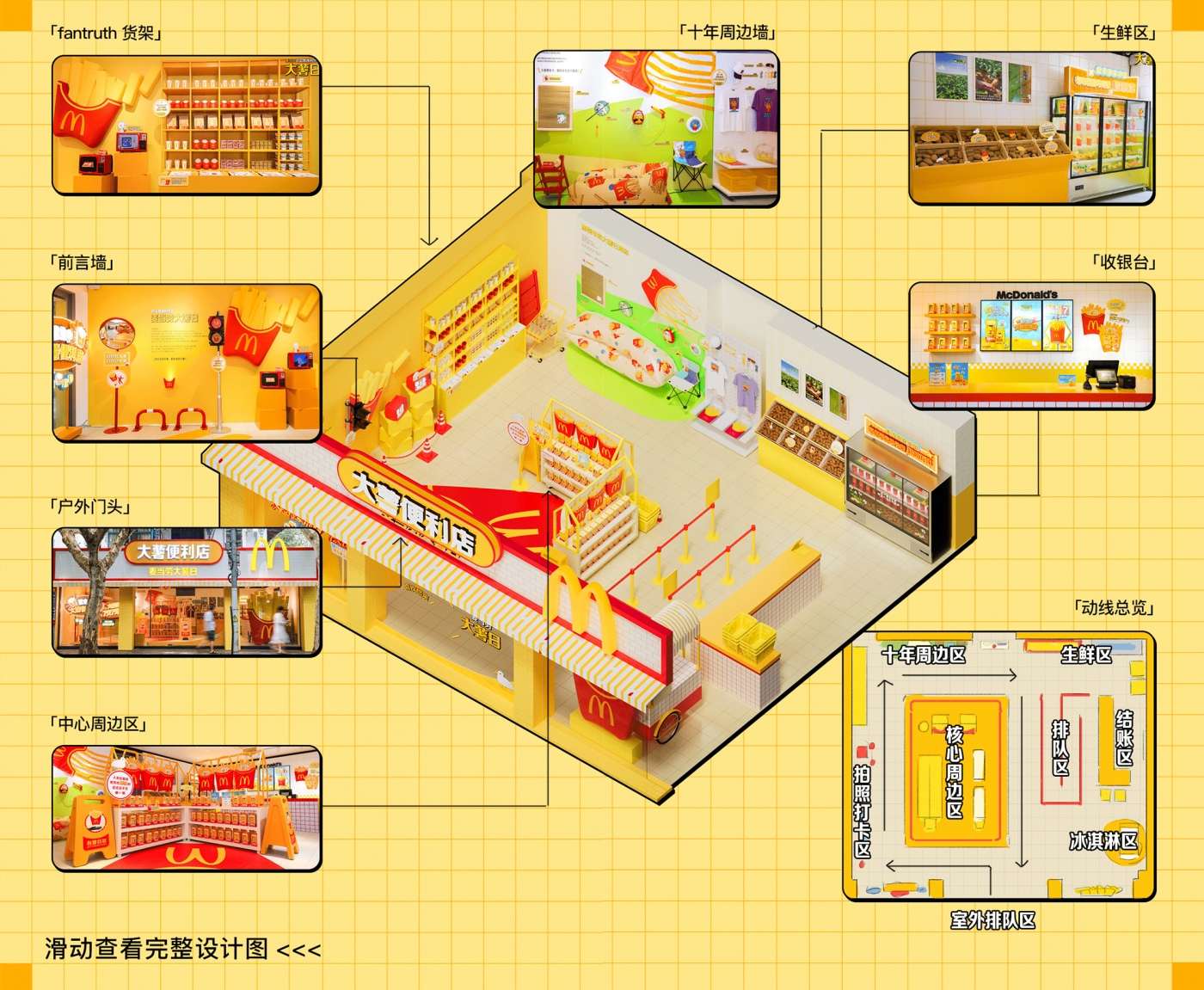 麦当劳大薯日步入第十一年,在已有声量基础上,今年聚焦放大节日感,突破限定周边与促销转化局限,以“好好享受大薯 就够了”为核心,打造“麦当劳大薯便利店”快闪活动,1:1 实景还原,构建“FRIES ONLY”的沉浸式“大薯世界”。消费者可在此欣赏周边、了解大薯知识、体验互动装置,仿佛回到“好好享受大薯”的家。巨鹿路快闪店以巨型大薯与霓虹灯牌吸引路人目光,主题与促销提示结合,激发路人进店欲望。